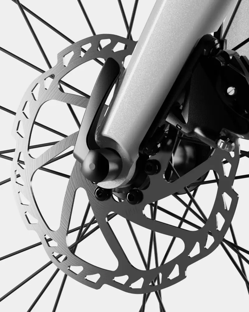 Li:on ayant fait le choix d’un cadre et d’une fourche en fibres de carbone recyclées, issues de l’industrie automobile. Leur fabrication est le fruit d’un processus de moulage par injection ultramoderne. Résultat, on découvre un ensemble aux lignes épurées, sans soudure, avec un bilan environnemental très bon.