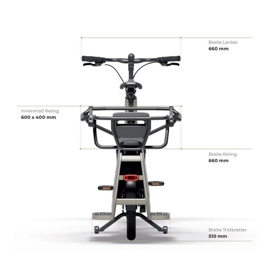 Avec une capacité de batterie de 800 Wh, des roues de 20" et un poids total autorisé en charge de 200 kg, le "Long CLAx" est parfait pour les familles et tous ceux qui veulent se déplacer beaucoup - confortablement, en toute sécurité et avec style.