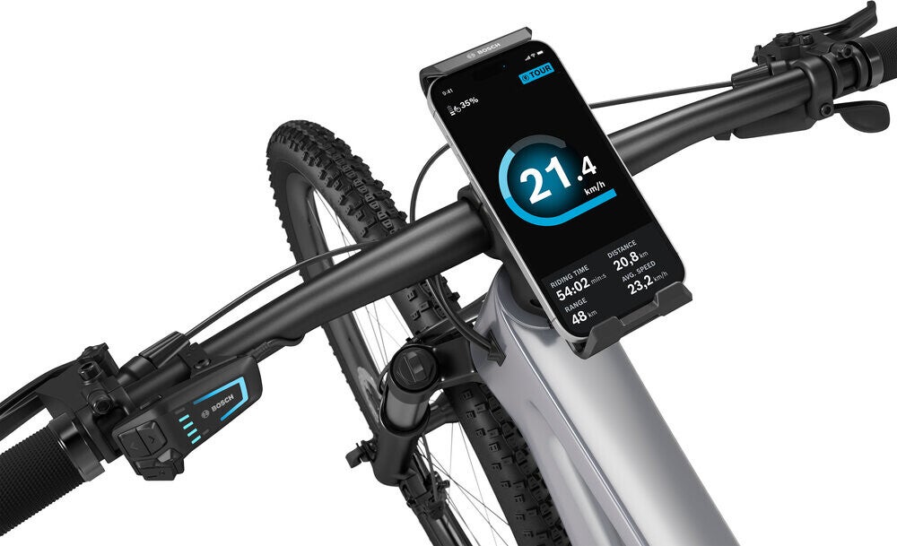 - Le SmartphoneGrip vertical permet de fixer le smartphone sur le guidon et de le transformer en écran eBike en format vertical grâce à l'application eBike Flow.